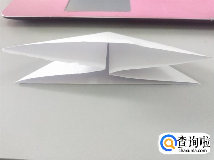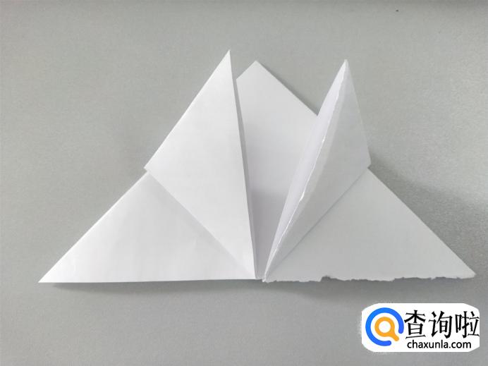 选择其中一个角,将其向上翻折,形成如下图所示形状。