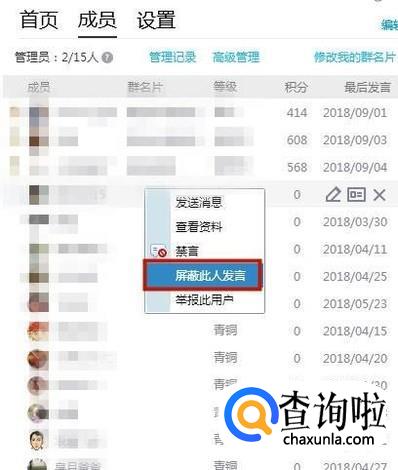 最后点击屏蔽此人发言就可以了。