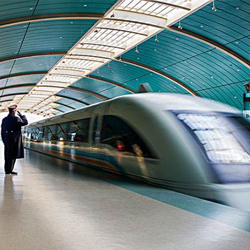利用相斥磁力悬浮的列车,一开动很快就可以加速到时速50公里,跑了50—60米的距离之后,便在轨道上悬浮起来。列车沿着地面越“飞”越快,目前最高可以达每小时603公里(理论上可以到更高速)。