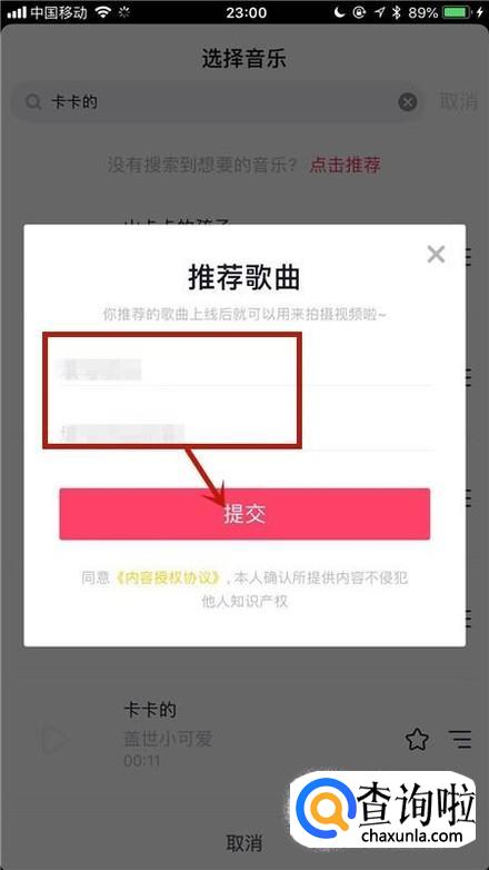 最后输入你的歌曲名称和歌曲链接并点击提交就可以了。你学会了吗?赶快动手试一试吧。