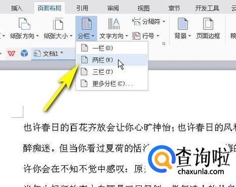 下面展开相关内容。在这里即可看到有“分栏”按键。