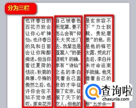 随即,内容分为两栏显示。同理,若想要三栏显示,那么,选择“三栏”即可。