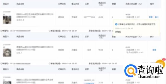 然后我们就可以返回订单的页面了,这个时候我们就会发现在订单的后面出现了备注,我们可以点击查看具体的备注内容!