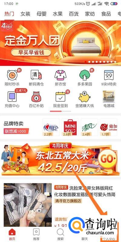 进入【拼多多】后,我们点击右下角的【个人中心】。