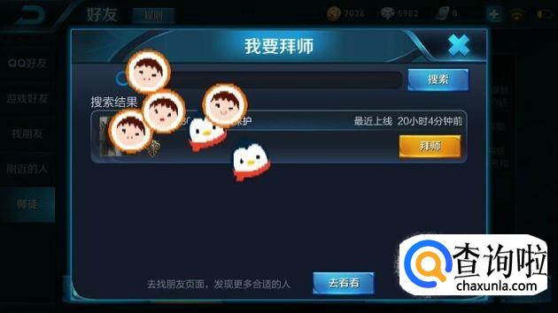 最后,在输入栏里面找到你想要拜我为师的好友的昵称,然后点击右边的拜师即可。