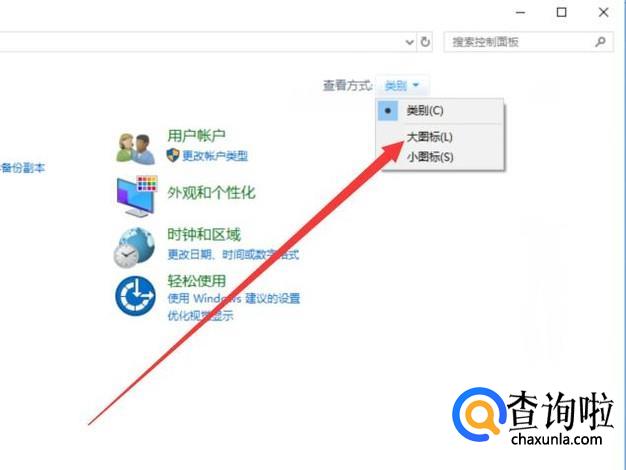 进入之后,将图示位置调整成“大图标”,如图所示。