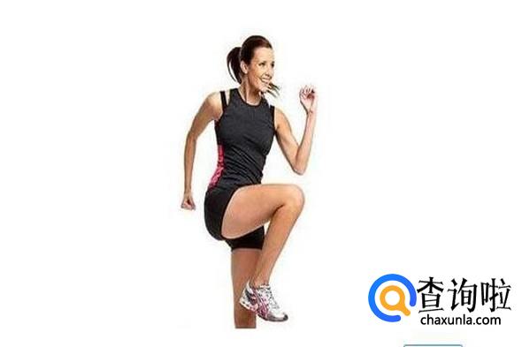 站立然后在原地做跑步动作,不同的是要努力的抬高自己的双腿,使得在抬高的时候大腿和地面平行。