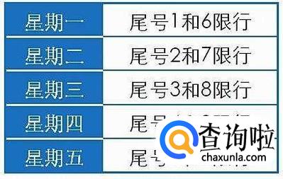 ④限行规定:工作日每天限行两个号。即:号牌最后一位阿拉伯数字为1和6的机动车周一限行、2和7的周二限行、3和8的周三限行、4和9的周四限行、5和0的周五限行(因法定节假日放假调休而调整为上班的周六、周日,按对应调休的工作日限行)。