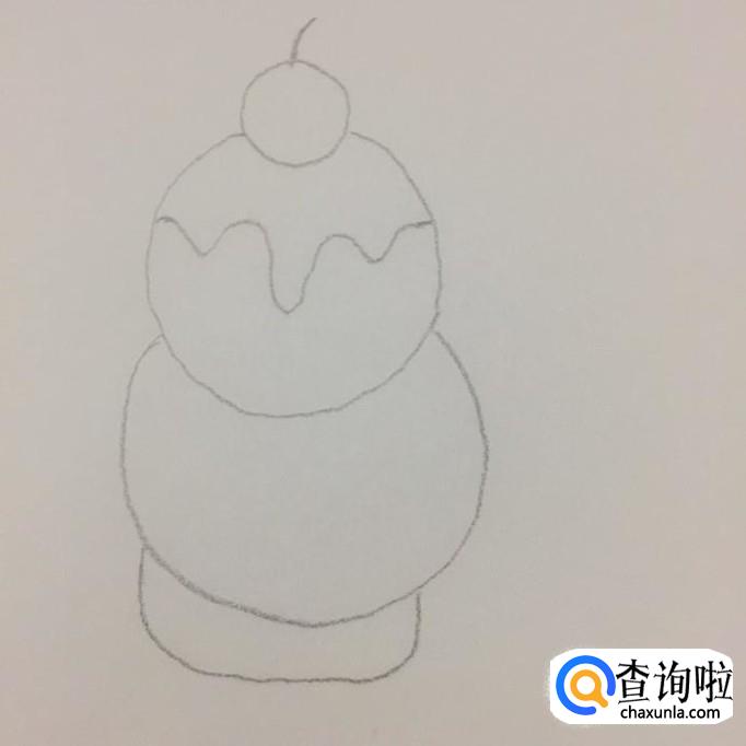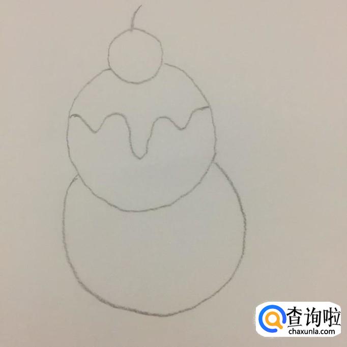 首先用铅笔在A4纸上画出冰激凌上端的樱桃,如下图所示。