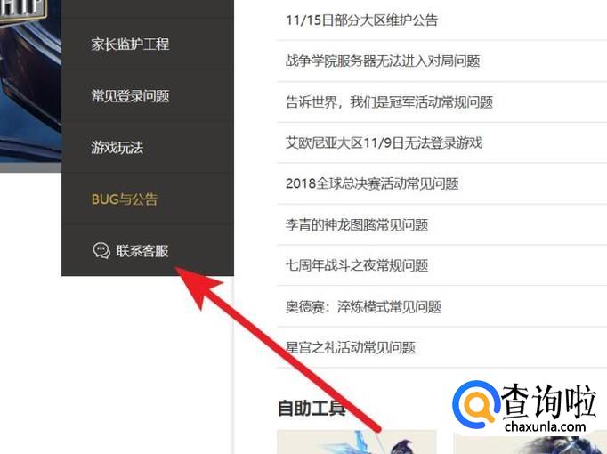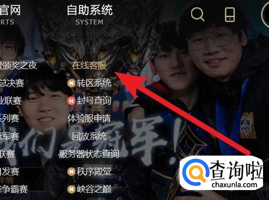 登上英雄联盟官网,在自助系统中有两个功能,在线客服和封号查询。