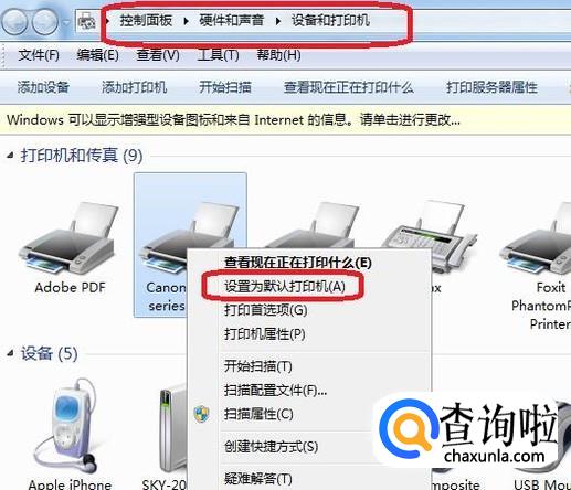 关闭计算机管理,打开控制面板,进入“设备和打印机”,找到安装的打印机,然后右键单击,选择“设置为默认”,此时应该就可以使用打印机了。