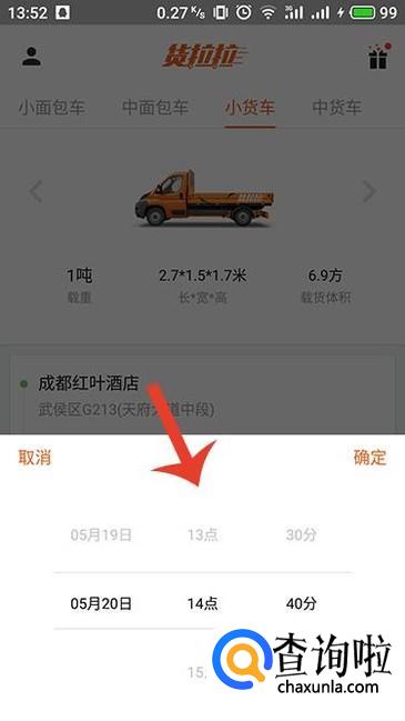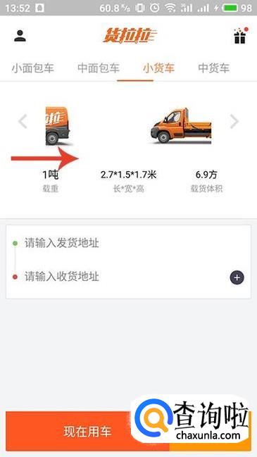 确定货车类型之后,还需要确定发货地址以及收货地址,一定不要选错了哦。