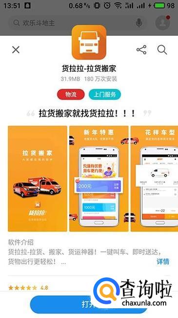 在应用市场搜索“货拉拉APP”,然后进行下载安装,安装完成之后点击进入。