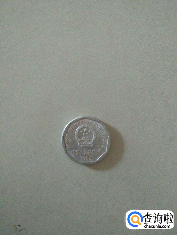 1995年1角硬币,直径22.5毫米,正面图案为国徽、宋体汉字“中华人民共和国”,汉语拼音“ZHONGHUARENMINGONGHEGUO”,阿拉伯数字年号。背面图案为菊花图案,面值1角,并注汉语拼音“YI JIAO”。币材质为铝镁合金,外齿为光边。由于1994年的经济紧缩政策的后遗症,该年份的硬币又再次扩大产出,市场上流通量很大,所以也就只价值5元一枚了。