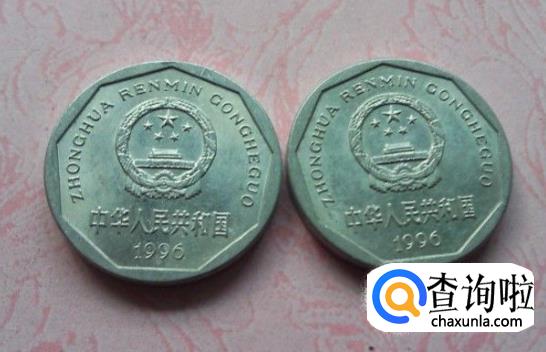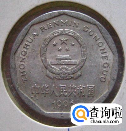 1996年1角硬币,直径22.5毫米,正面图案为国徽、宋体汉字“中华人民共和国”,汉语拼音“ZHONGHUARENMINGONGHEGUO”,阿拉伯数字年号。背面图案为菊花图案,面值1角,并注汉语拼音“YI JIAO”。