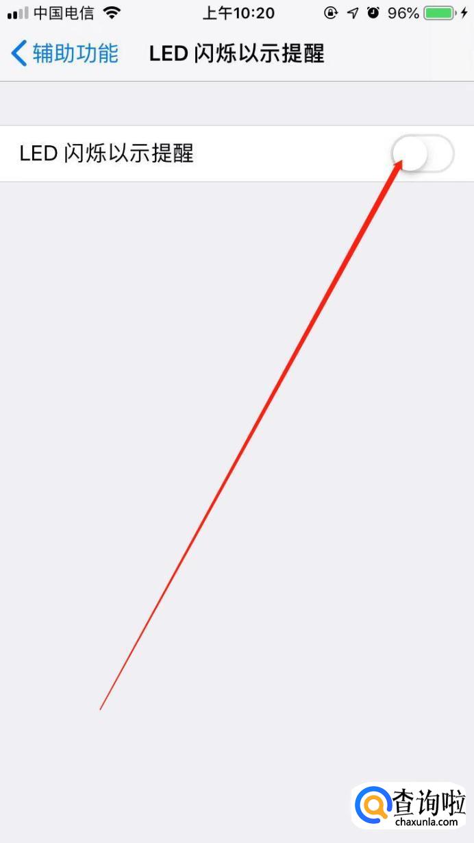 然后【LED闪烁以示提醒】右边有个小圆点,点击下就可以啦!