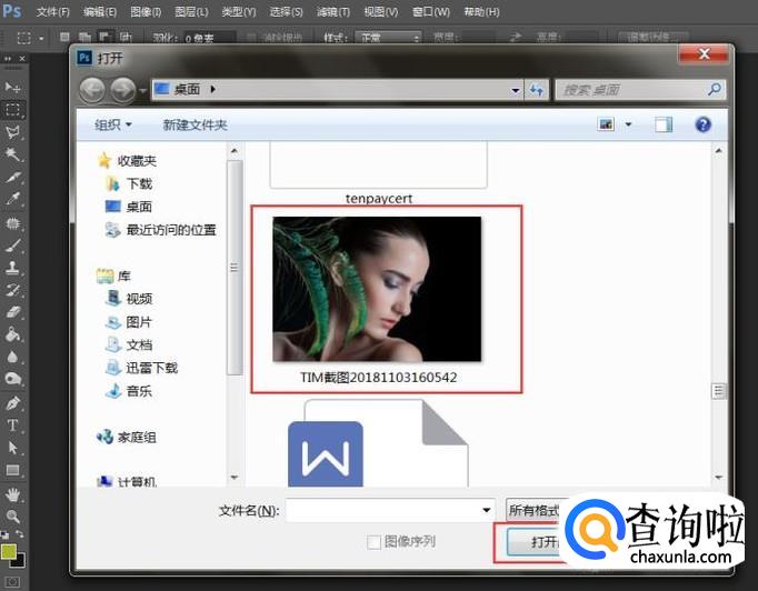 然后找到你要添加的图片,添加的图片要透明的PNG格式哦。同样的办法,点击“文件”,再点击打开,然后找到要添加新的图片。