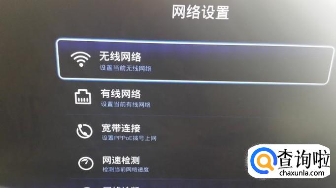 打开电视,按遥控器上的“菜单”按钮,在电视上选择设置--网络设置。