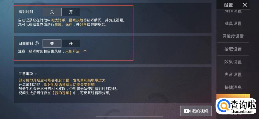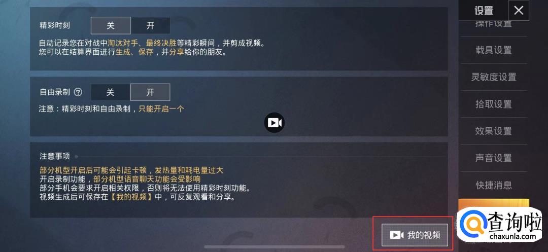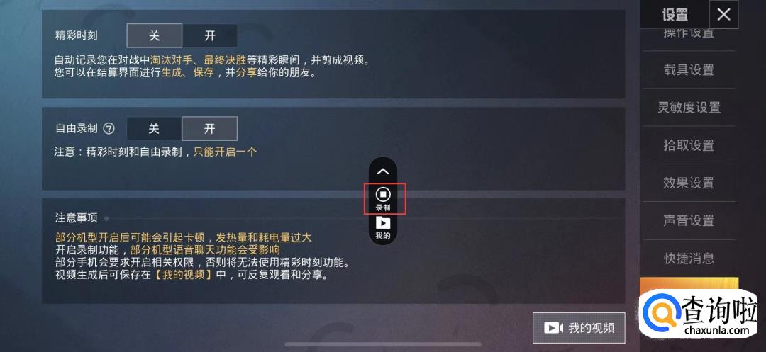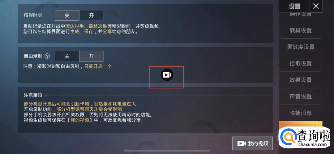 精彩时刻会自动记录精彩瞬间生成视频,自由录制可以在游戏中随意打开录制按钮。打开自由录制后,屏幕中央会出现一个摄像机按钮。