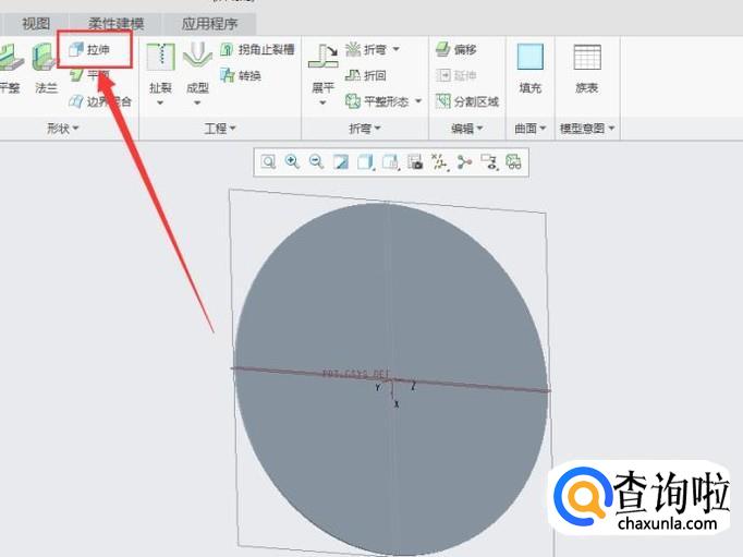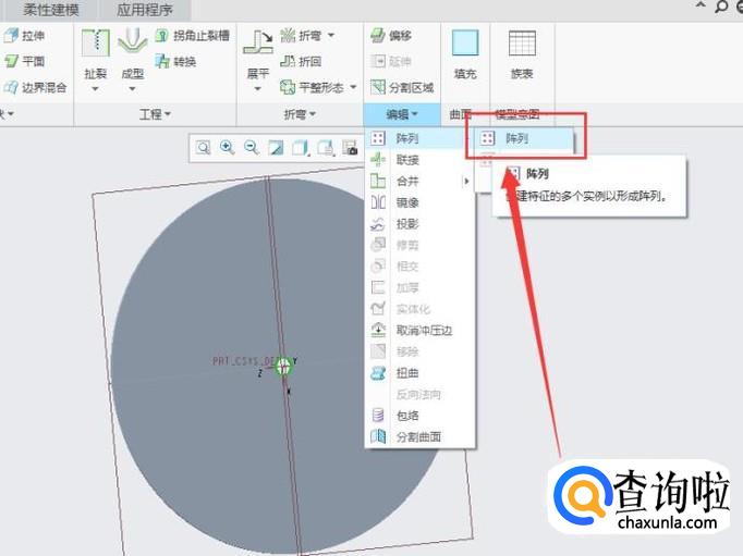 选中刚刚做完的拉伸,然后找到“阵列”,点击并进入。