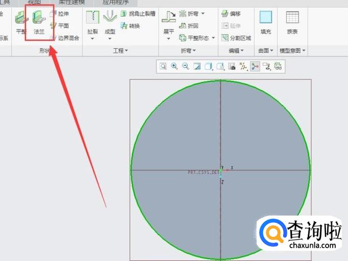 选中圆边线,然后点击“法兰”命令,如图所示。