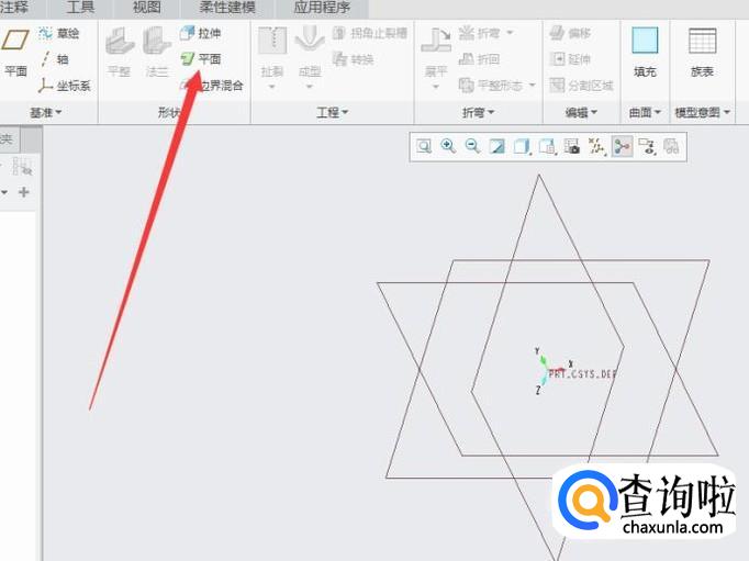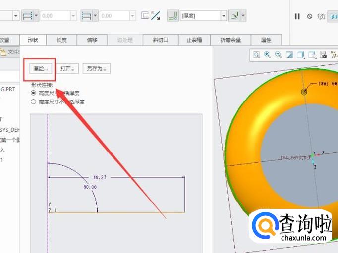 进入之后,在形状功能界面找到“草绘”,点击并进入,如图所示。