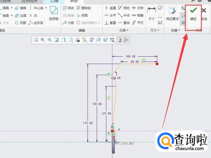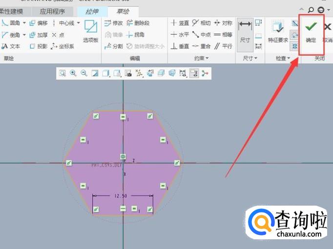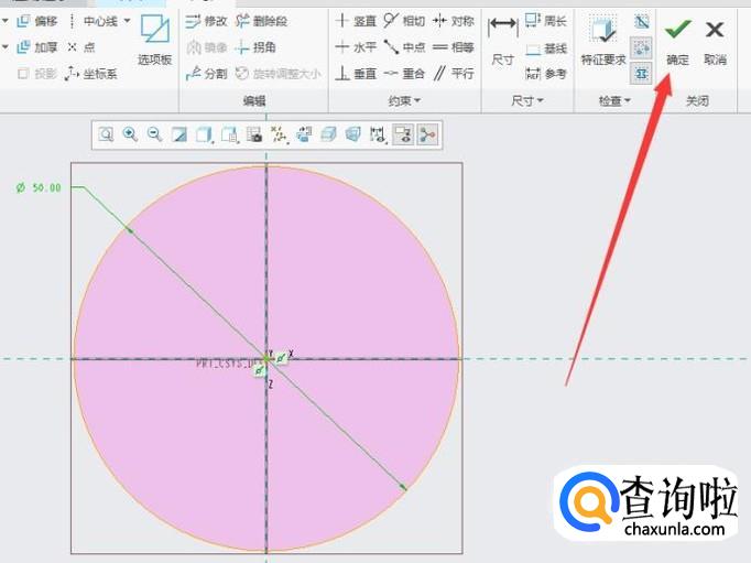 在草绘界面绘制一个直径为50的圆,然后点击“确定”,如图所示。