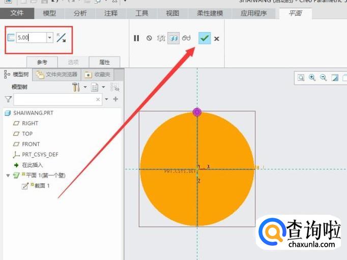 将壁厚设置为5,然后点击绿色对勾即可,如图所示。