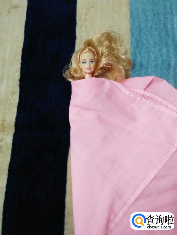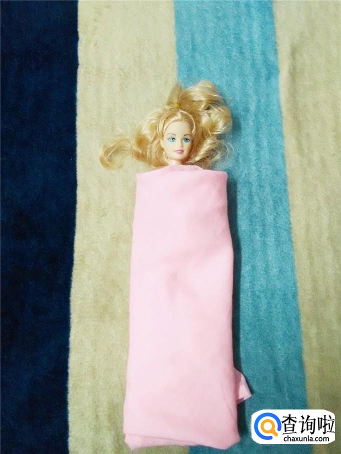 准备一块棉布单和一个娃娃,这里用娃娃当作婴儿。