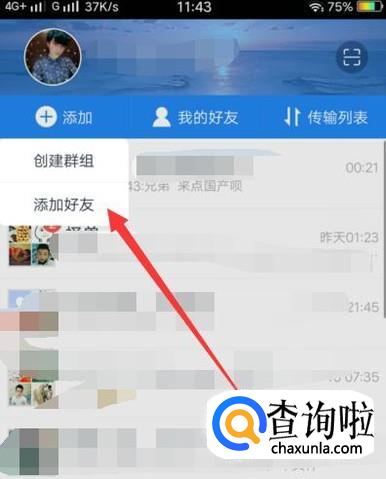 打开之后,点击“添加好友”,进入下一页面,如图所示。