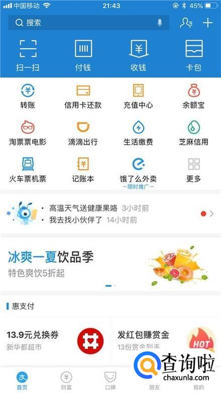首先在我们的手机桌面上找到支付宝并点击它,如下图所示。