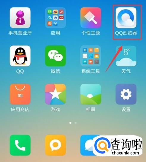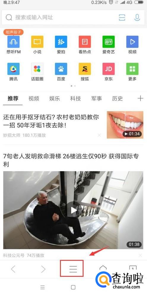 打开了QQ浏览器,在QQ浏览器这里,我们就点击中间的位置,如图。