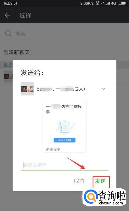 我们接着就会来选择微信群来投放我们的投票,如图。