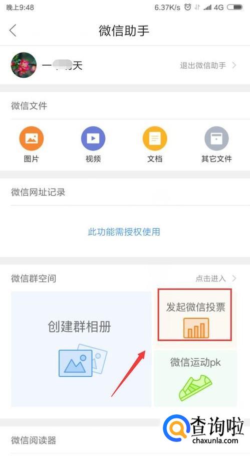 我们登录后就接着点击“发起微信投票”,如图。