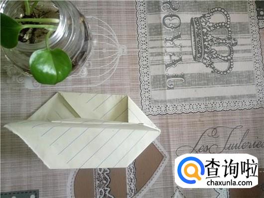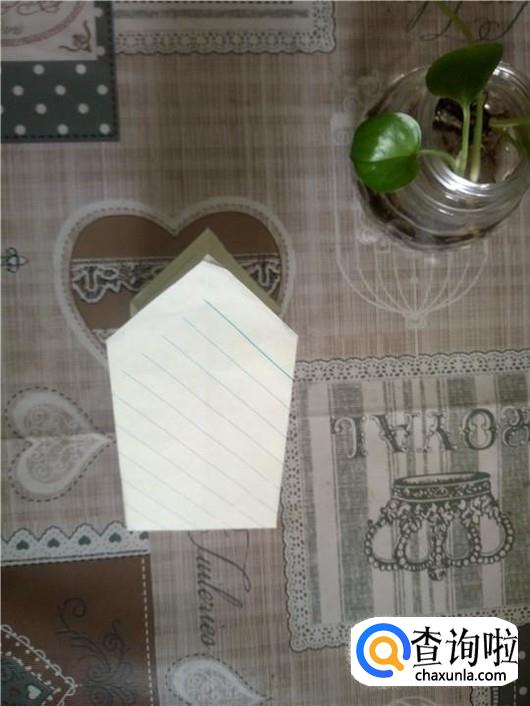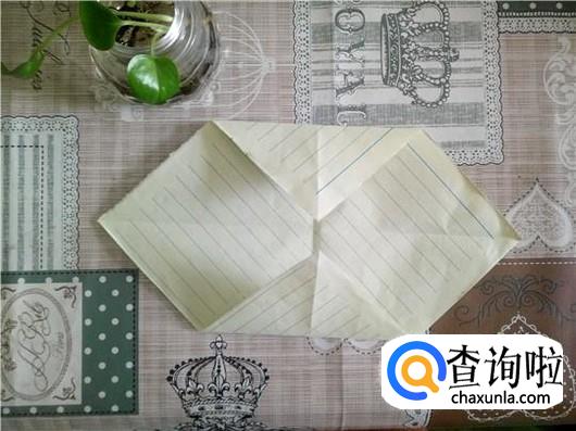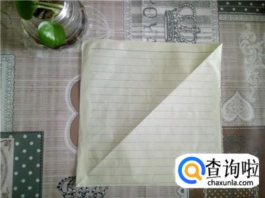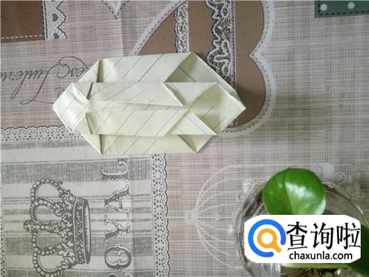 把下面那一个角折叠进去,如第一个图所示。然后把角翻出来对折,背面也一样。