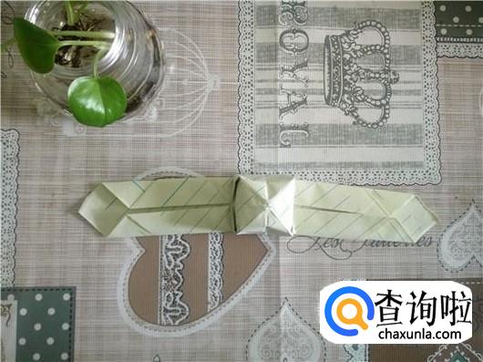 先把两个角横向对折,然后再横向对折,最后再竖向对折,参照下图。