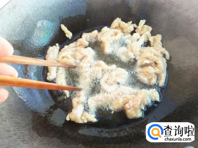 油烧热之后,把鸡肉条放进去,用筷子谩骂的翻几下别粘锅就行了,这个时候要用中火,不然鸡肉条还没炸熟,外表却糊了。
