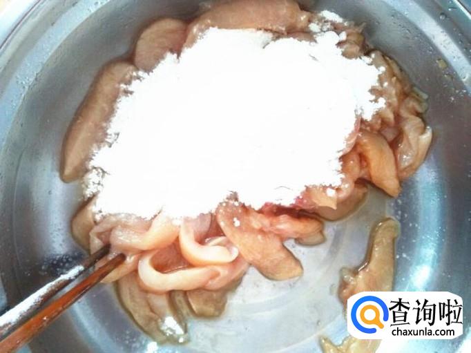 炸鸡柳的过程其实很简单,如果说哪一个过程比较麻烦和重要,那么撒面的过程我个人觉得比较重要和麻烦,如果这一步做不好的话,炸出来的鸡柳硬硬的不好吃。把鸡肉条放进盆里,撒上面粉,用筷子不断的翻搅。