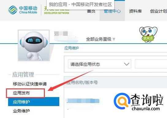 进入网页后注册/登录,直接跳转至“管理中心”,点击“应用发布”。