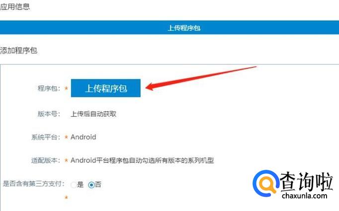左侧点击“应用维护”,在刚刚创建的应用点击“添加程序包”。