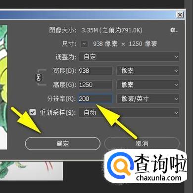 在这图像大小面板中,我们可以看到图片的尺寸;以及分辨率。