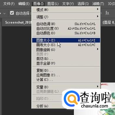 下方展开一列表;从中找到并点击“图像大小”。调出图像大小的设置面板,当然也可以按下快捷键:ALT+CTRL+I