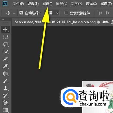 启动PS软件,把图片素材拖入PS中。鼠标移到菜单栏的“图像”这里,并点击。