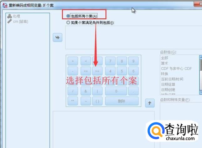 在弹出的界面中选择包括所有个案选项,如下图所示