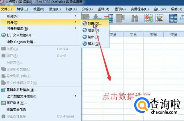 首先我们点击顶部的文件菜单,在弹出的菜单中选择数据选项,如下图所示