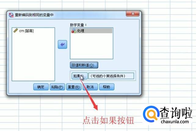然后我们回到变量重新编码界面,点击如果按钮,如下图所示