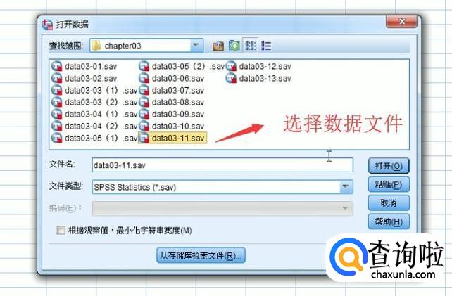 接下来在数据文件夹中选择要操作的数据文件,如下图所示
