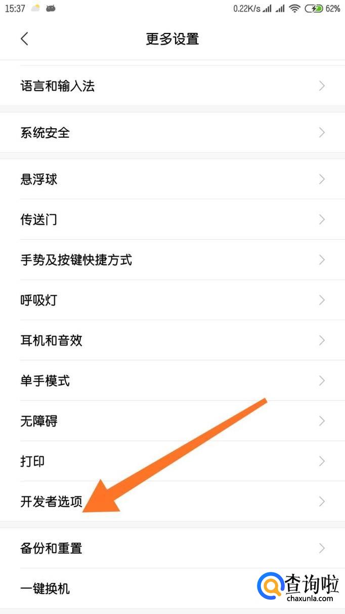 如果是想要通过电脑刷机,点击打开手机的设置,然后点击“更多设置”,然后点击“开发者选项”。