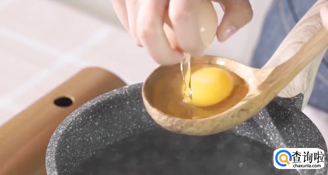 打一个鸡蛋在汤勺里,将汤勺放入沸水中慢慢烫熟鸡蛋,这就是温泉蛋了。