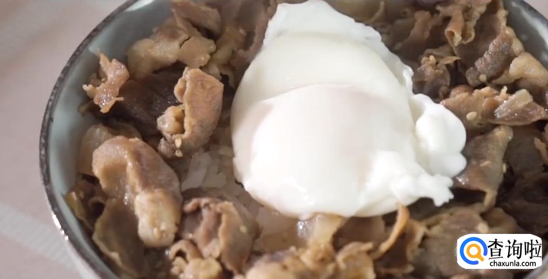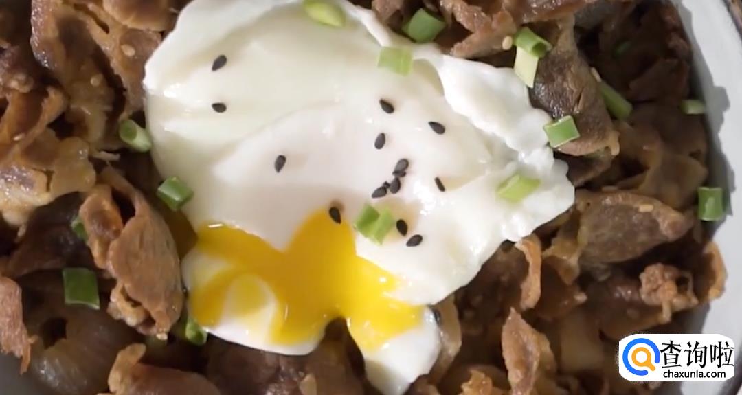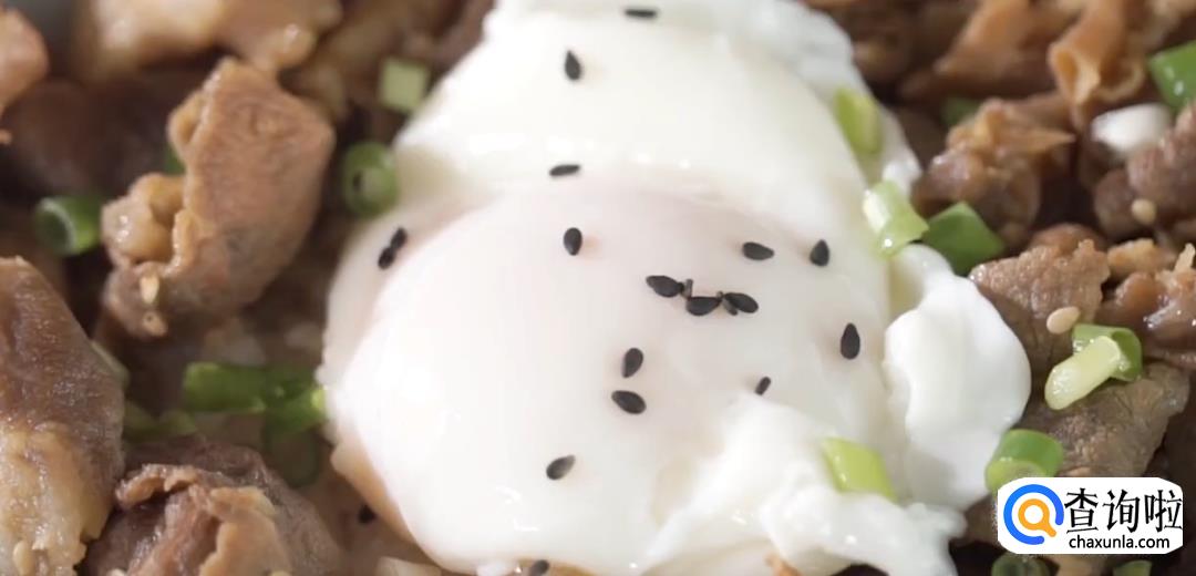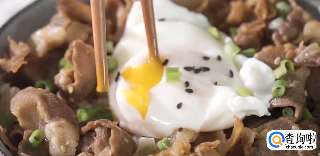 将七分熟的鸡蛋捞出后盖在肥牛上,再撒上芝麻和葱花即可。
